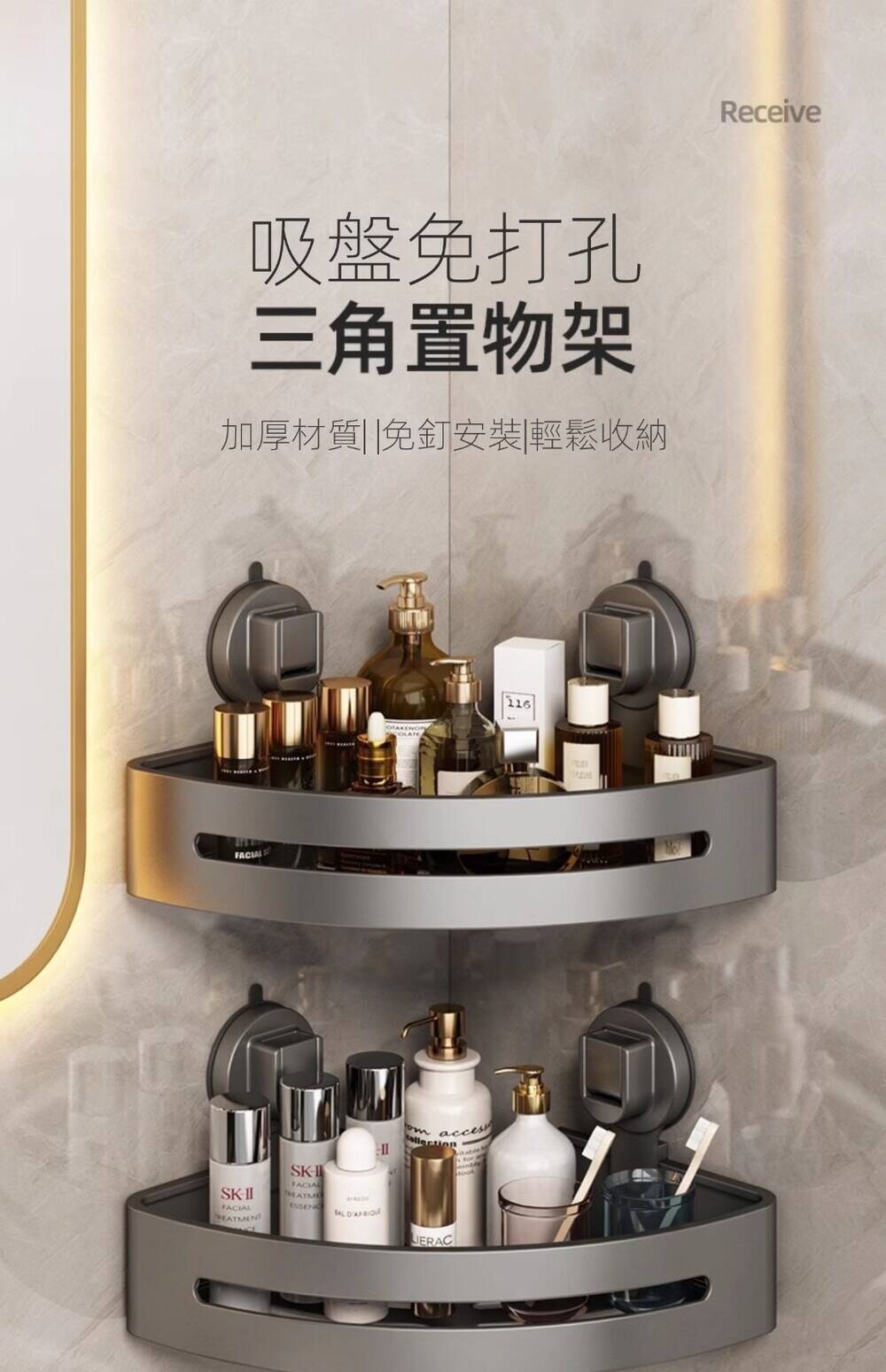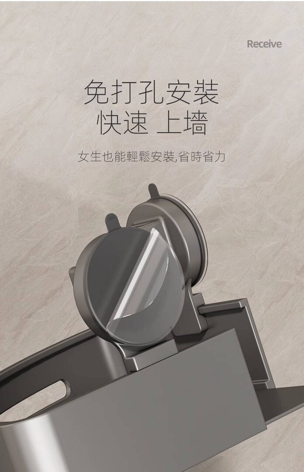 20分鐘前自帶吸盤,可隨時移動重復使用的置物架 免打孔廚房浴室衛生間三角置物架多用途壁掛收納架毛巾架 - 【超夯下殺】買一送二,共三入組 NT$998