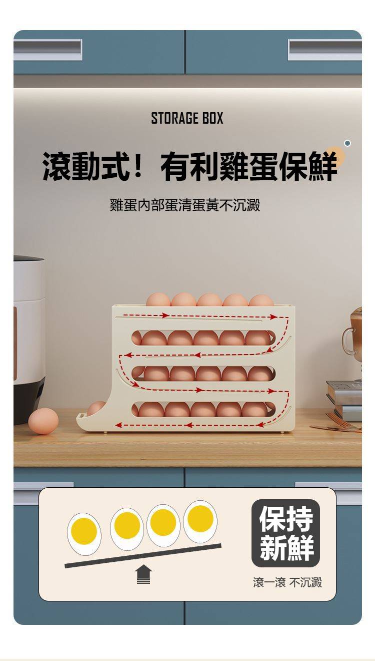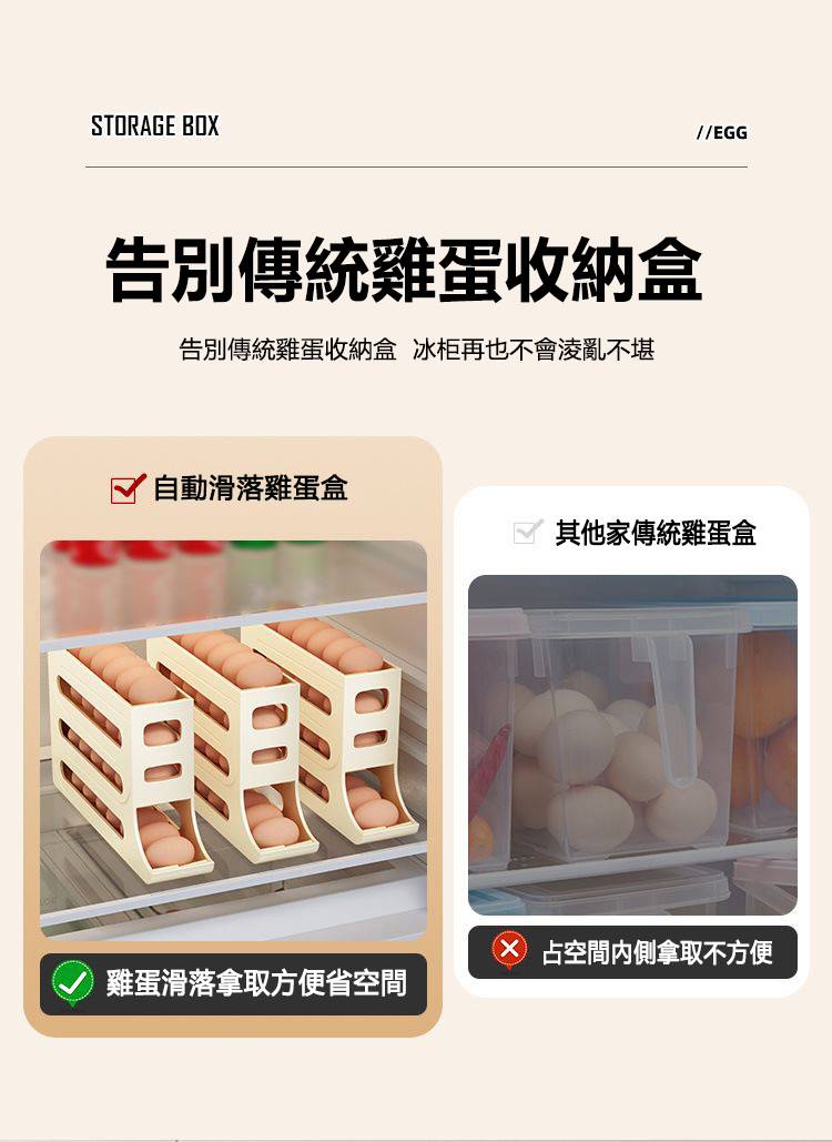 2分鐘前自動滾蛋式雞蛋收納盒 - 3入组(可放90個雞蛋)NT$1098
