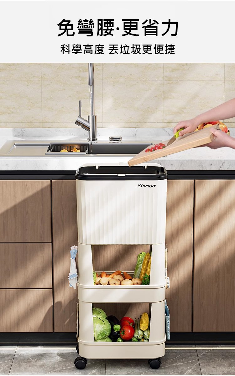 12分鐘前【不彎腰】家用可移動多功能置物垃圾桶 - 【超殺*贈20垃圾袋】1入組$279
