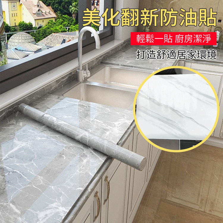 12分鐘前限時搶購 廚房貼紙防水防油大理石家具貼膜自粘牆紙瓷磚灶台桌面櫃子保護膜 - 8卷【1卷僅需149】NT$1199