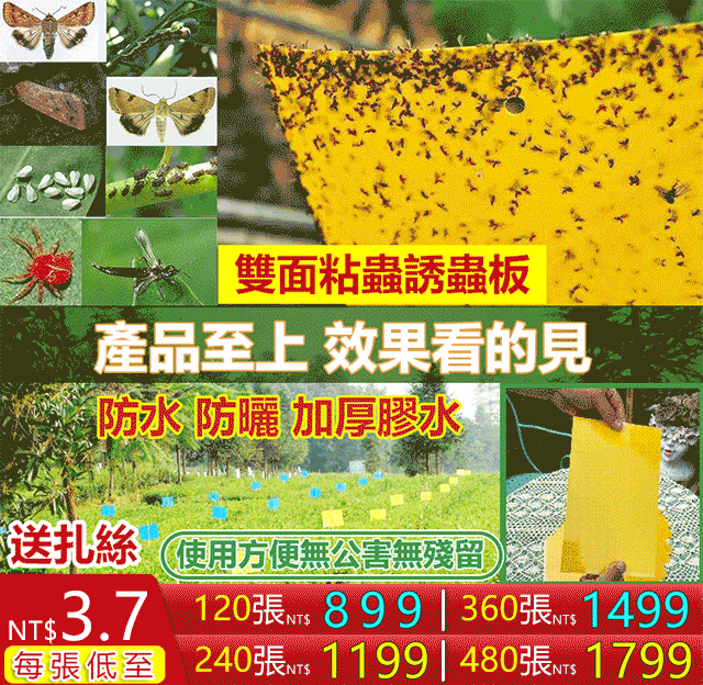 12分鐘前種菜養花不會用打農藥!物理防蟲「雙面粘蟲板」不怕水、不怕曬,粘性超強。花園、果園無需打農藥。室內,院子都可以使用! - 雙面粘蟲板 秒殺價 480張裝入僅需 NT$1799